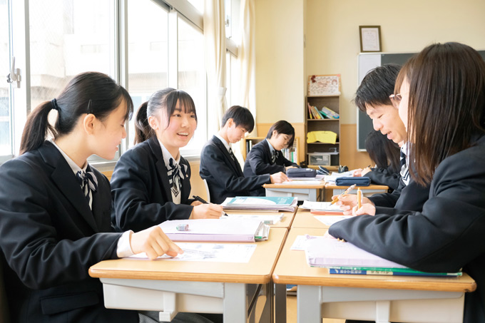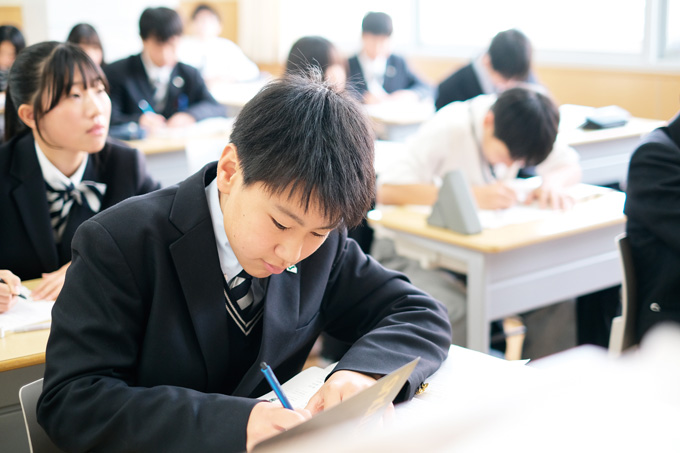 中学生は18時まで、高校生は19時まで、校内を自習スペースとして開放しています。 図書室の個別ブース、職員室前の質問コーナーのほか、各教室で友だちと一緒に勉強に励む生徒もいます。