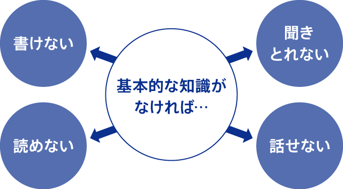 グローバル社会で学び、世界とともに生きるためには語学力が欠かせません。「話す」「聞く」「書く」「読む」の英語4技能をバランスよく伸ばすことで、グローバル人材にふさわしい実践的な英語力を育成します。