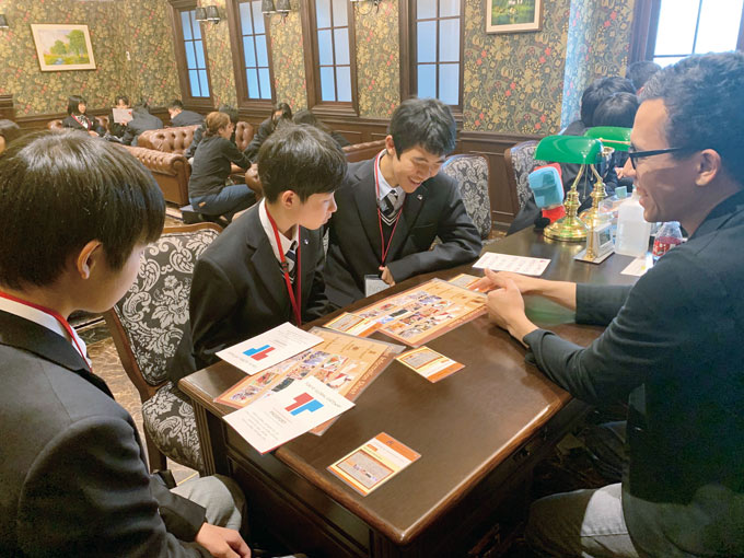 「とりあえず話してみる」失敗を恐れずに話そうとする姿勢が、英語力を伸ばす上で最も重要な要素です。ネイティブスピーカーを相手に、自分の興味・関心事、日本の文化等について説明したり、尋ねたりすることで達成感を感じ、英語学習のモチベーションが高まります。英語の授業内で全員が参加する必修レッスン(年5回)のほか、自分のタイミングで複数回受講することができます。