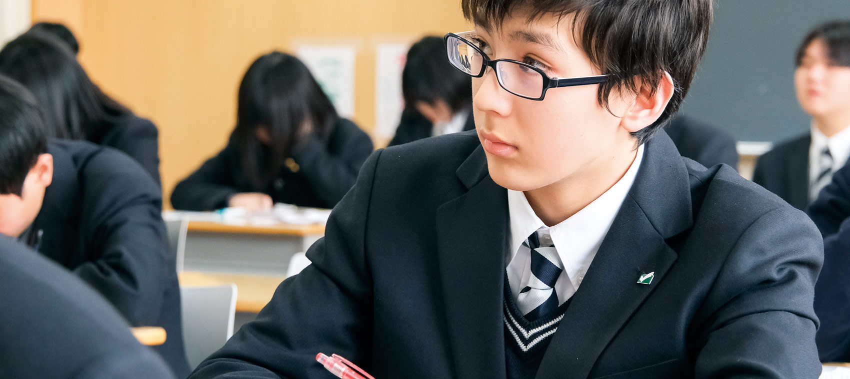 1年次では、CSクラスを除く全ての入学生・海外からの留学生が同一のクラス編成。多様な仲間と共に学校生活を送ることで協働力が育まれていきます。また、「進路講話」「大学出張講義」「大学合格体験を聞く会」など、進路選択をサポートする行事も定期的に開催しています。担任教諭との二者面談・三者面談等のコミュニケーションを軸に、学力とキャリアデザインの両面から生徒の成長を促し、ポジティブな進路選択・実現へと導きます。