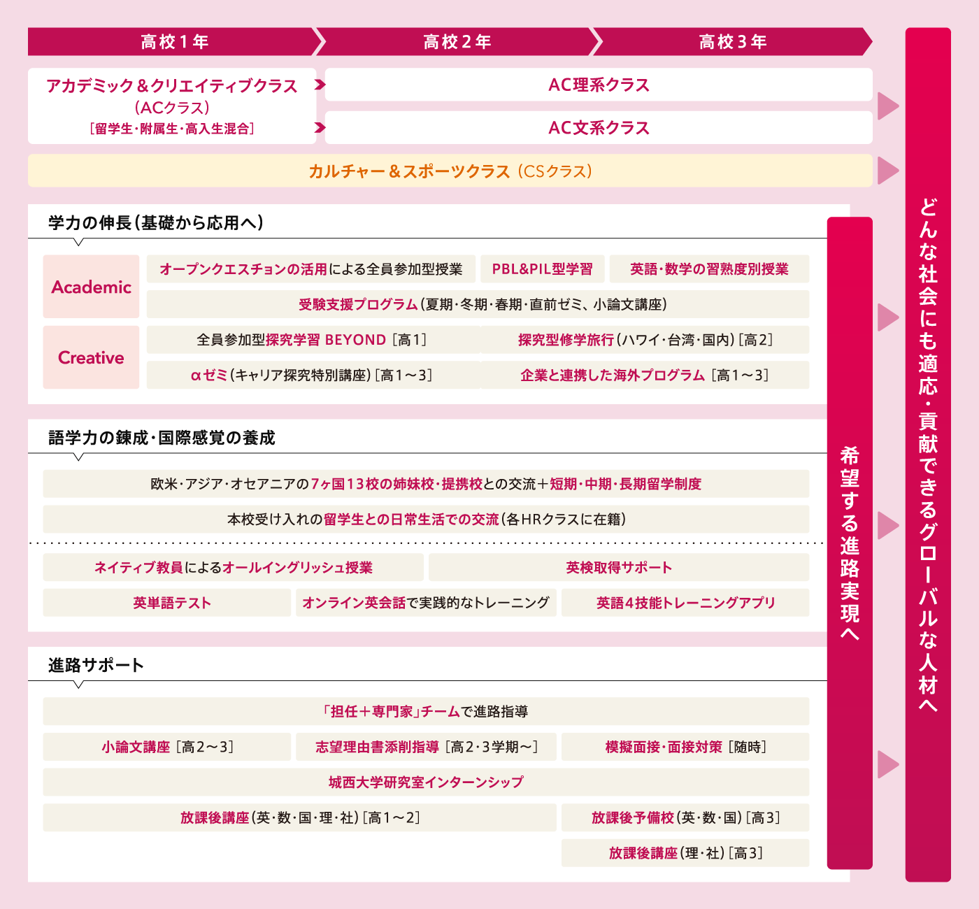 夢の実現へと導くカリキュラム・生徒の希望を尊重したクラス編成