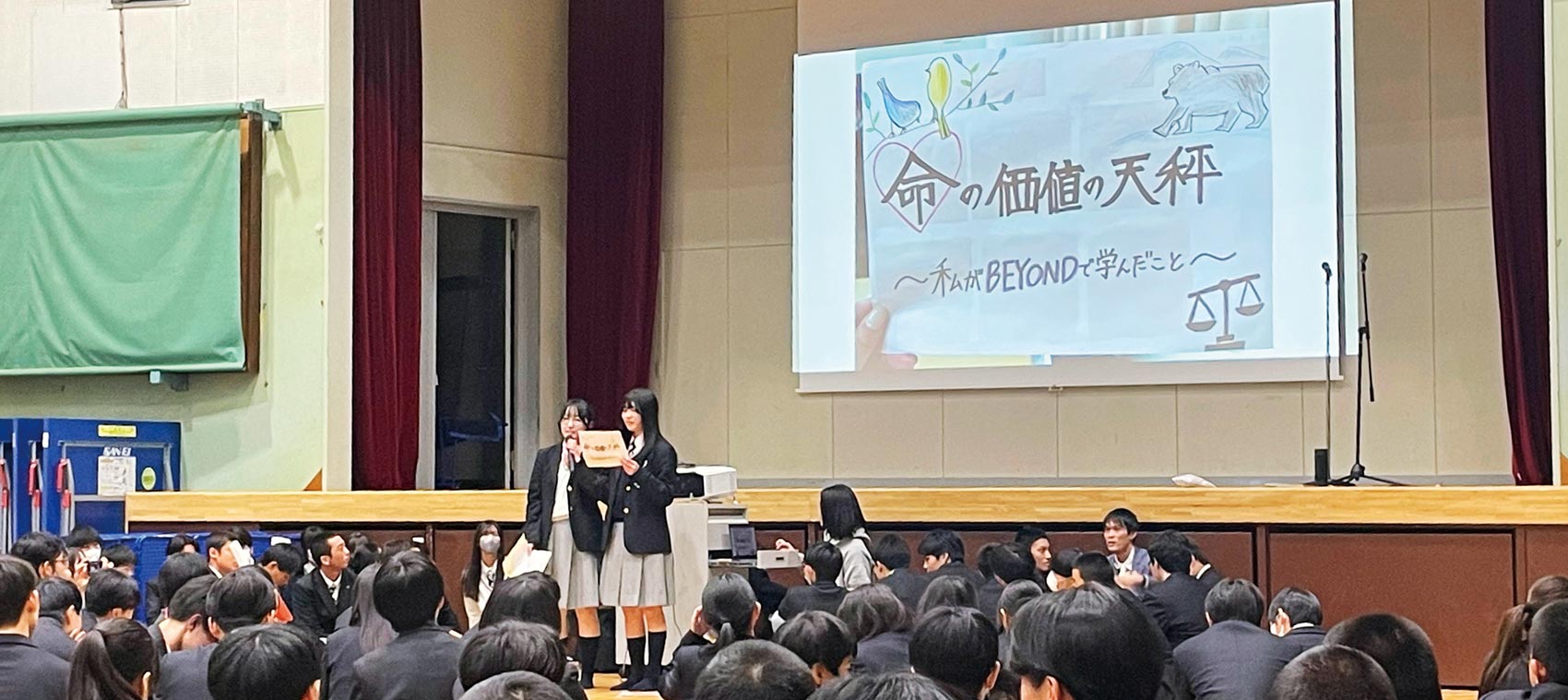 探究学習の締めくくりはプレゼンテーションによる学び合いです。他者に情報を伝え、他者の学びに共感することで、さらなる探究意欲のタネをまきます。
