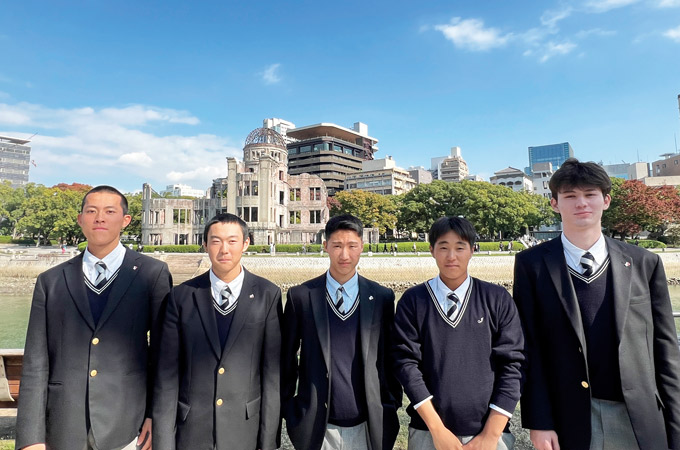 広島の原爆ドーム、原爆資料館見学から始まる国内コースは、平和と地域をテーマとしています。徳島県西阿波地方が抱える地域課題について、徳島県立池田高校・脇町高校の生徒さんたちと、それぞれが設定したテーマについて議論を重ねました。実地調査を重ねた上で、地元の方々に解決に向けた提案を行いました。