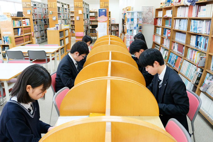 放課後から夜19 時まで校内の自習スペースを開放しています。「自宅よりも集中できる」という生徒が多く、大学受験勉強の場として、また、放課後講習や部活動終了後の自習の場として活用されています。特に定期試験前は大人気スペースとなります(中学生は18 時まで利用可)。