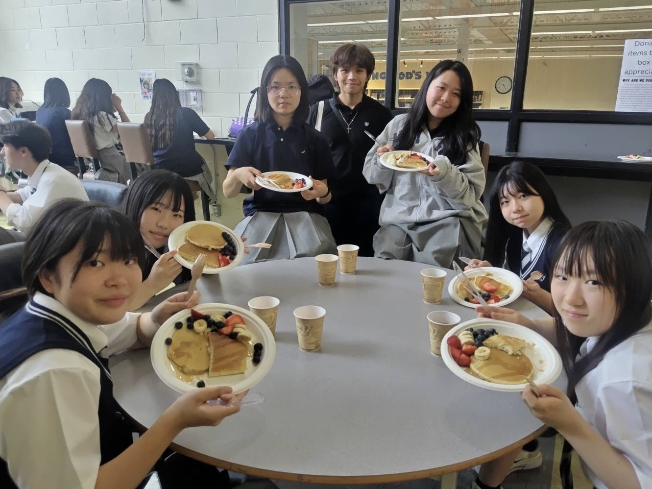 現地最終日の朝は、姉妹校サレークリスチャンスクール(SCS)にてパンケーキ朝食の提供があり、