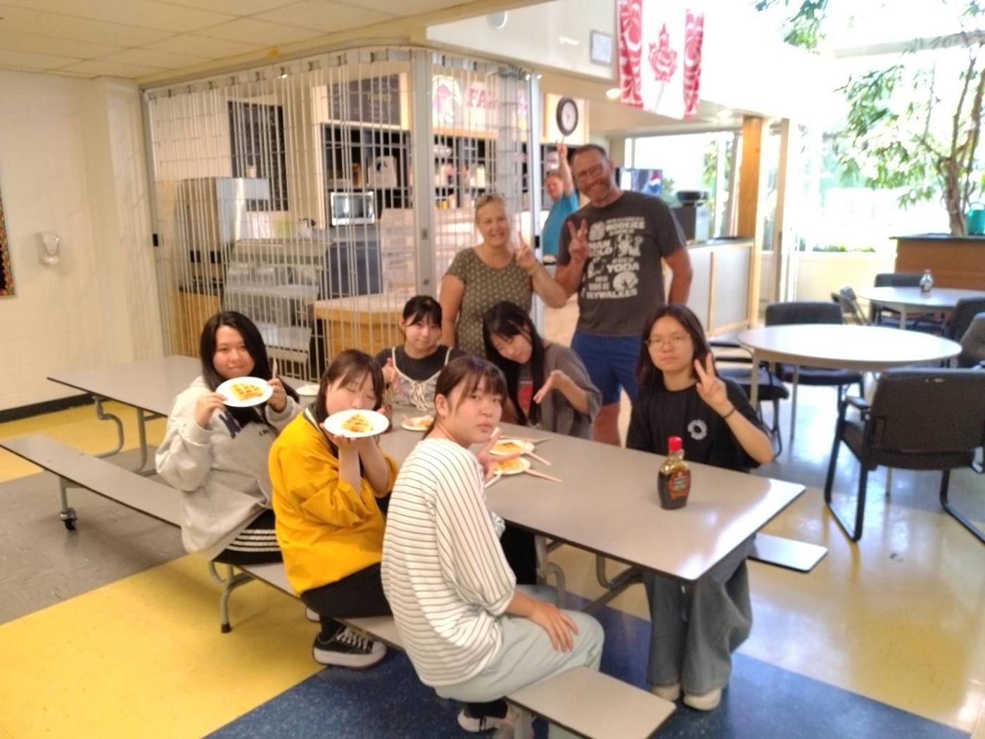 午前の授業ではワッフル作りを体験しました。出来立てのワッフルにサトウカエデ100%のメープルシロップをかけて、カナダの味を堪能しました。