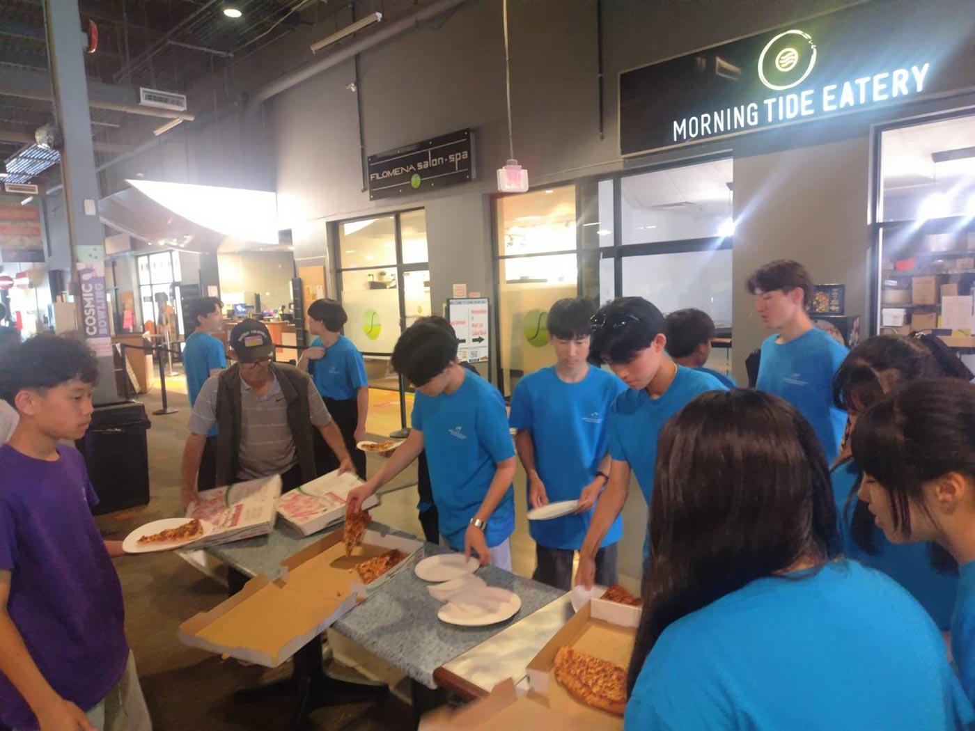 途中、運転手さんのジョージさんより、サプライズでピザが振る舞われ、突然のサプライズにみな喜んでいました。ピザを食べながら現地バディ生徒と談笑し、カナダの気分を味わいながらボウリングを楽しみました。