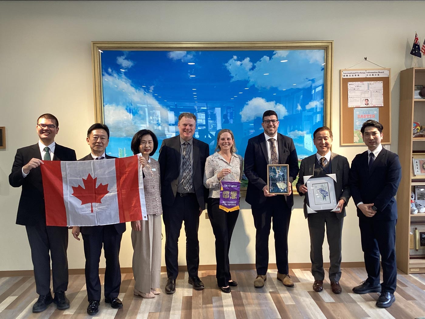4/25(金)、カナダ・ブリティッシュコロンビア州の姉妹校 サレークリスチャンスクールから、初等部校長、中高等部副校長をはじめとする4名の先生方が親善訪問で来校されました。校内施設の見学や英語授業の様子を視察された後、昨年同校に短期留学した城西生41名、長期留学した城西生1名と交流を行いました。本校が同校と姉妹校提携をして今年で8年目を迎えます。