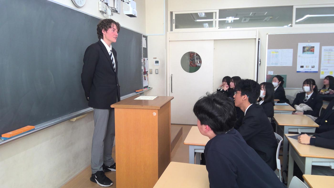 オーストラリアからの留学生 ザビエル君が12/19終業式の日をもって長期留学課程修了となりました。「4月より9か月間、城西高校で過ごしました。皆さんに迷惑をかけてしまうことが多々あったと思いますが、城西の先生や生徒のみなさん、そしてクラスの仲間のおかげで楽しい学校生活を送ることができました。一生の思い出になります。ほんとうにありがとうございました。」と話し、クラスでは名残惜しそうにクラスの友人と挨拶を交わしていました。城西での留学経験が、彼の将来の糧になることを期待しています。