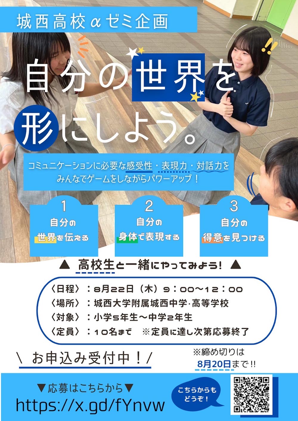 【αゼミ】8/22生徒ワークショップ参加者募集のお知らせ