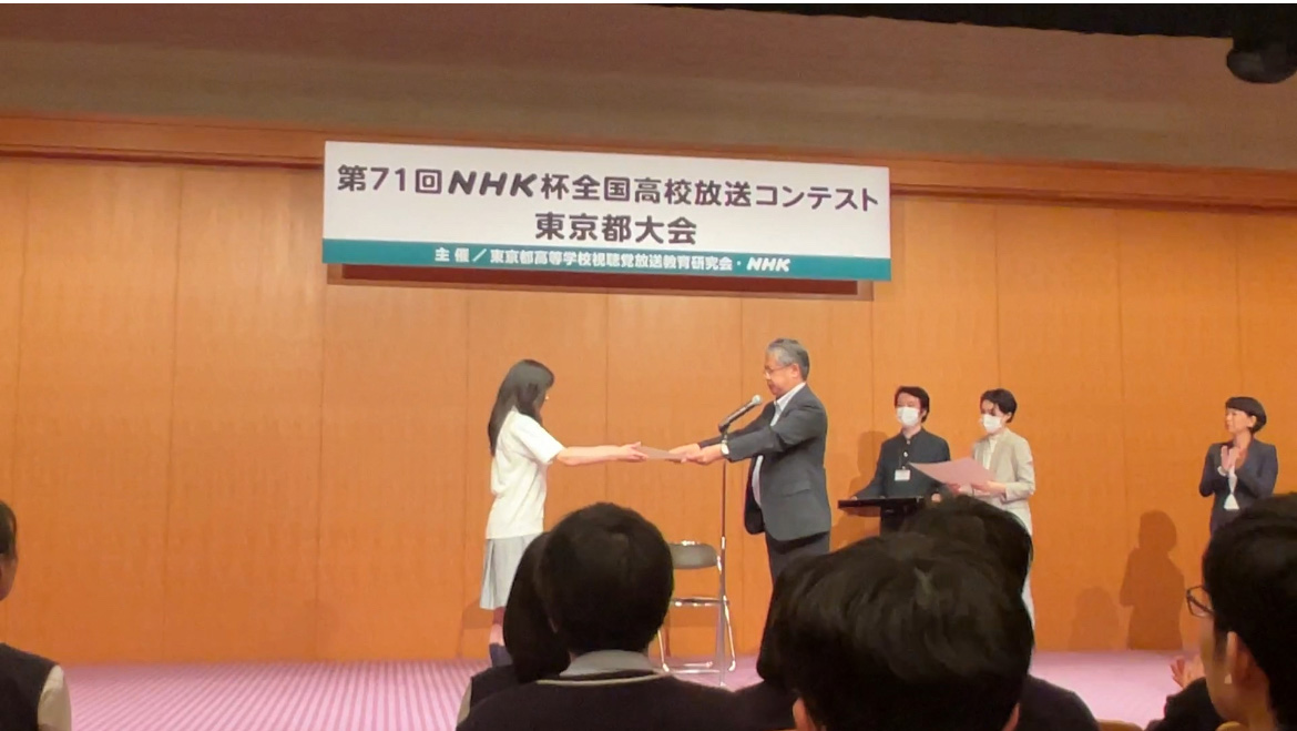 放送部、高校3年の袴田凜音さんが、第71回NHK杯全国高校放送コンテスト 東京都大会(決勝大会)のアナウンス部門にて、第4位を受賞しました。