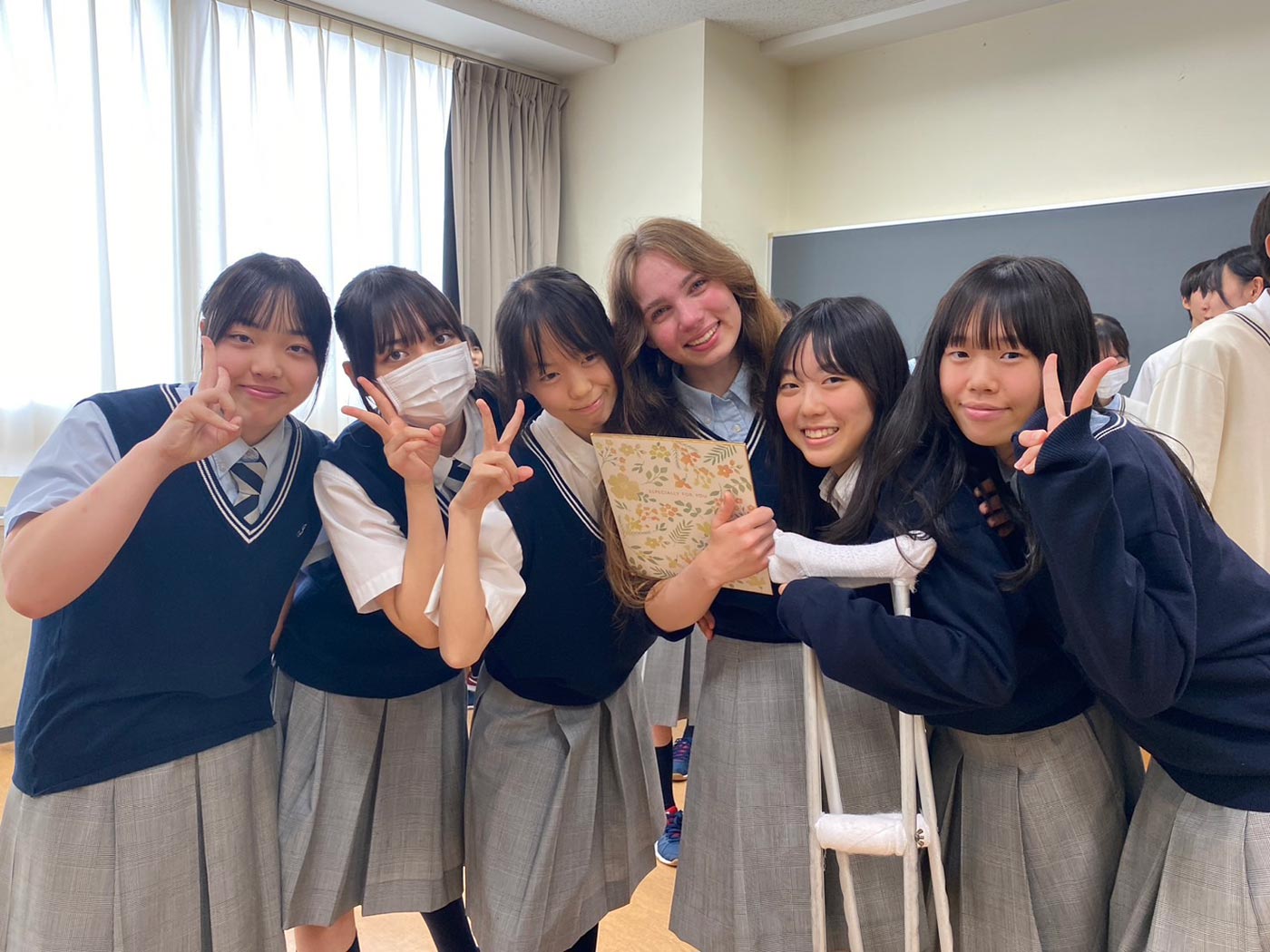 ハンナさんは、留学当初から人一倍日本語の勉強に励み、友人や教員とも積極的に日本語でコミュニケーションをとっていました。部活動は合気道部に所属し、クラスメイトが驚くほど見事な腕前を披露してくれました。修了式には全クラスから多くの友人が集まり、涙を流して別れを惜しみました。何事にも笑顔で前向きにチャレンジしてくれたハンナさんに、多くの生徒が勇気をもらったはずです。「卒業したら必ずハンナに会いに行く」と約束している姿も印象的でした。いつかどこかで再会できることを楽しみに、頑張りましょう!