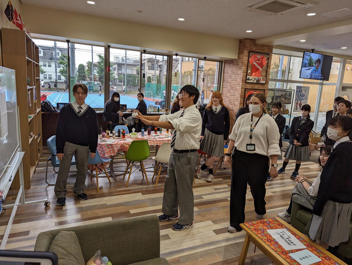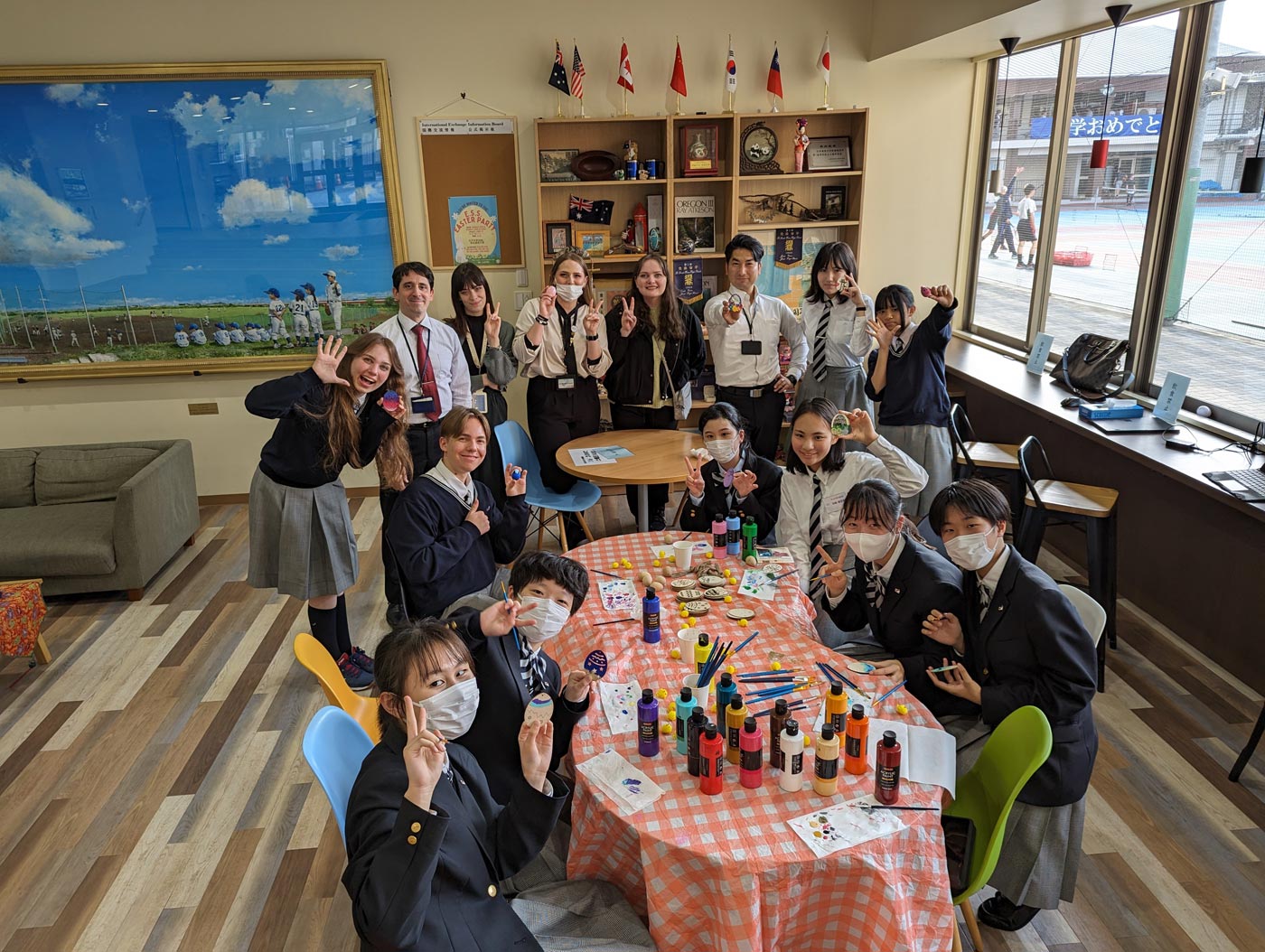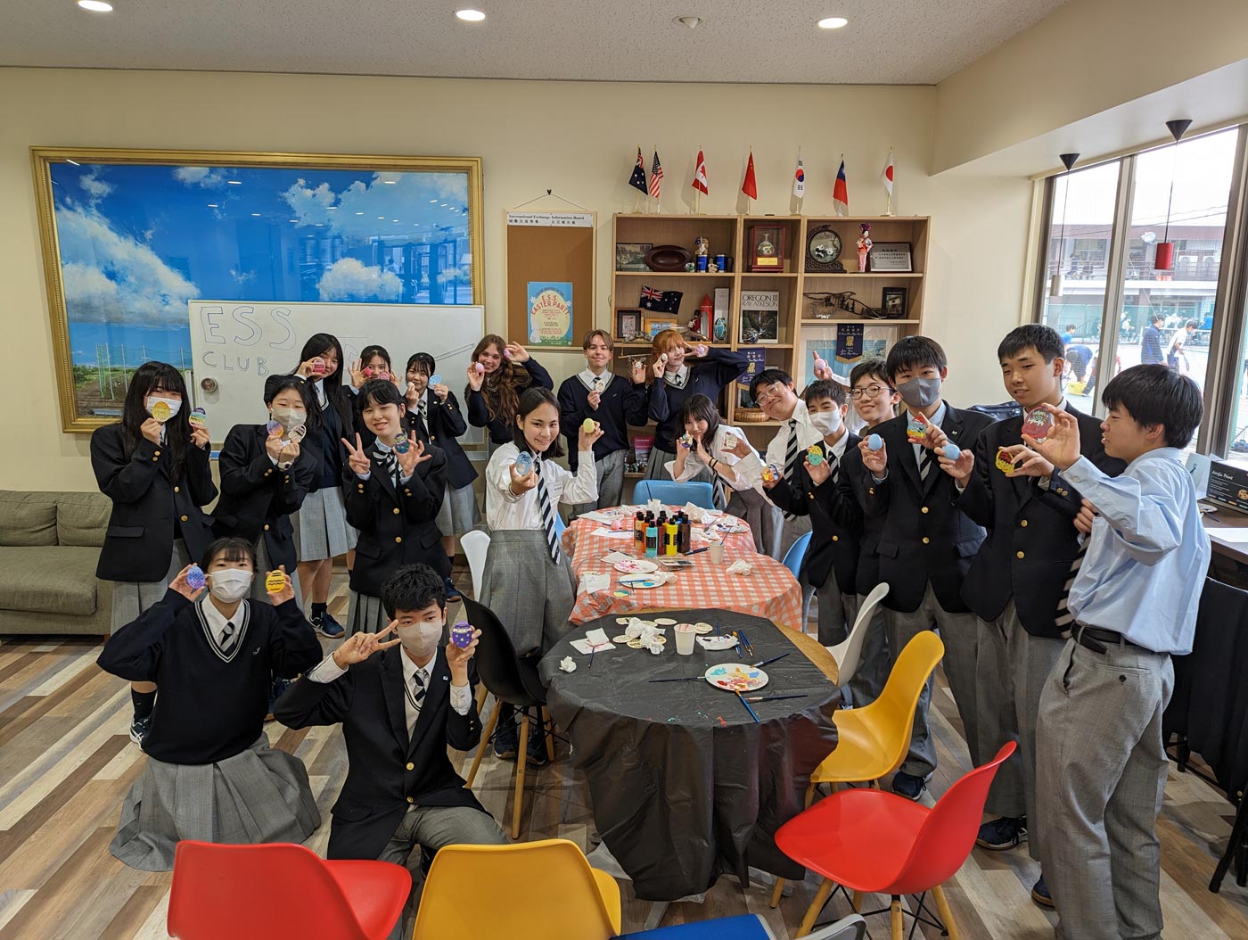 ESS(英会話クラブ)主催のイースターパーティーが行われました。長期受入れ留学生とともに、みんなでイースターエッグを染めたり、卵探しやイースターバニーに尻尾を巻くゲームをして楽しみました。