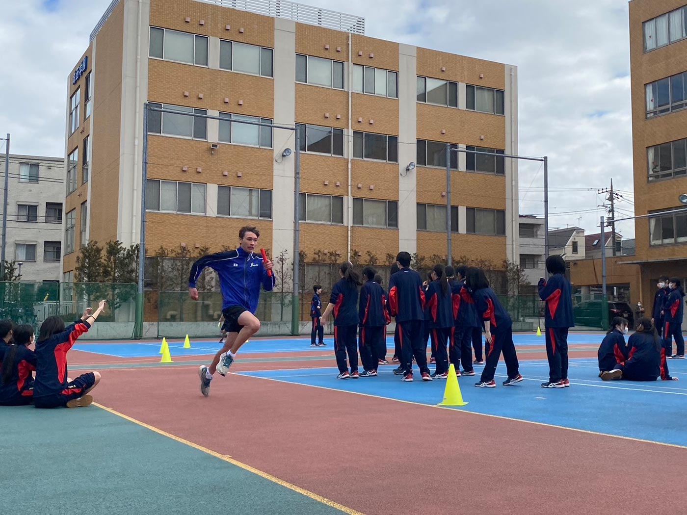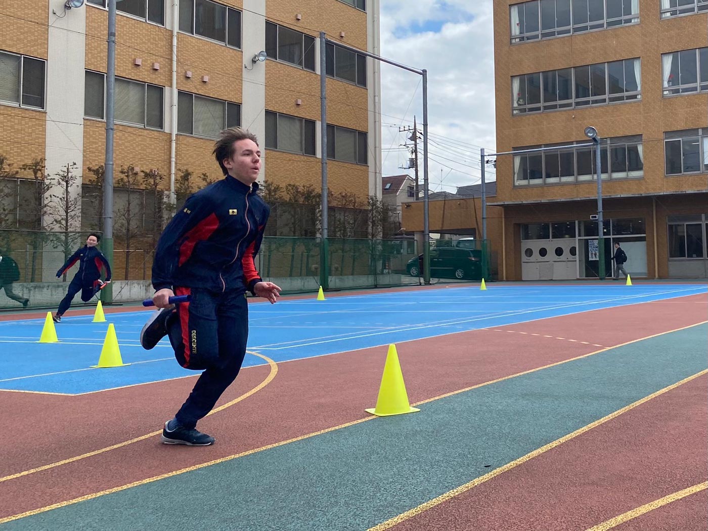 2月17日(土)、高校一年生は4時間目にスポーツ大会を実施しました。競技はクラス対抗リレーです。留学生たちにとっては初めての経験だったようで、クラスメイトとともにとても盛り上がっていました。