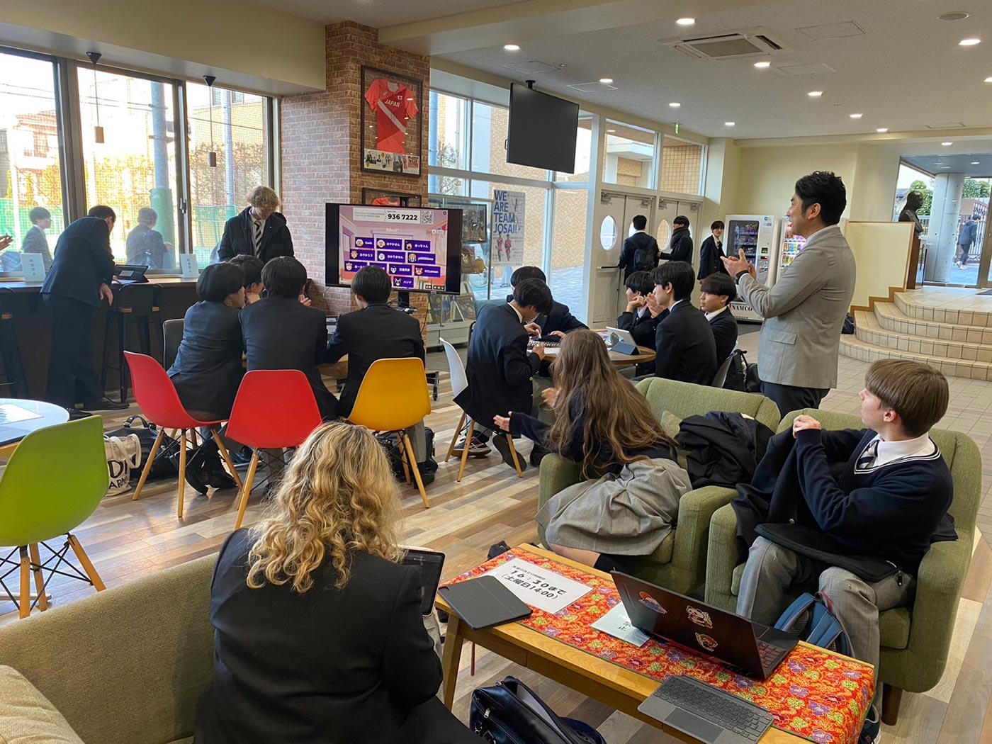 2/8(木)、国際交流委員会の企画として、海外留学生によるクイズ大会を実施いたしました。ドイツからの留学生・レナート君からは、ドイツのクリスマスやオクトーバーフェストの歴史に関するクイズが出されました。ニュージーランドからの留学生・イブさんからは、ニュージーランドの文化や教育・政治に関する問題が出されました。全問英語での難問に挑戦した城西生からは、正解の度に歓声が上がり、国際理解を深める貴重な時間を過ごしました。