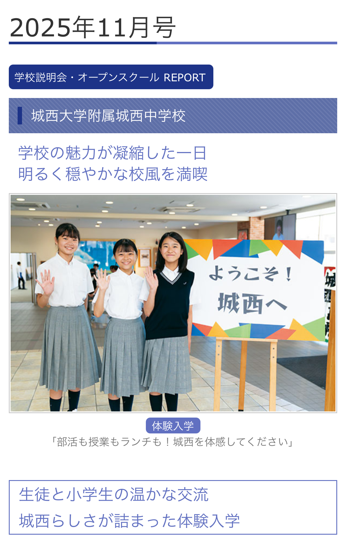 私立中高進学通信(2025年11月号)に中学体験入学レポートが掲載されました
