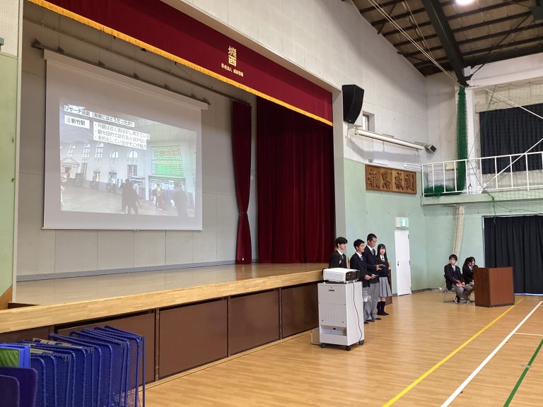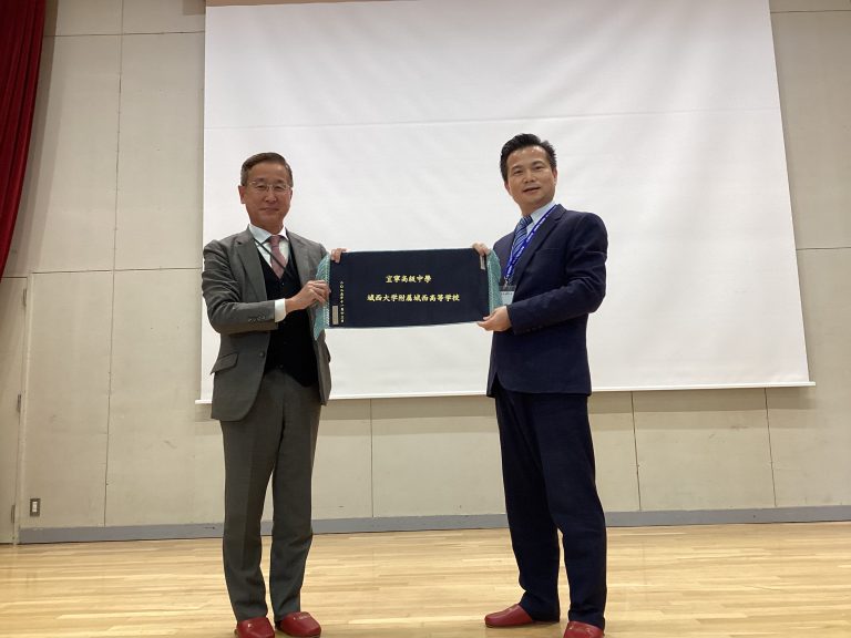 歓迎会では両校校長による公式記念品贈呈の後、生徒代表挨拶を行い、日本語を学ぶ2名の宜寧生徒が流暢な日本語で挨拶をしました。その後、城西高校からはダンス部による歓迎のパフォーマンス、代表2グループによる日台文化比較のプレゼンが行われました。