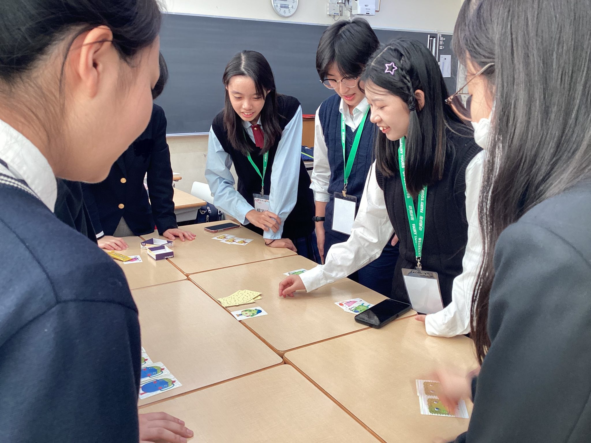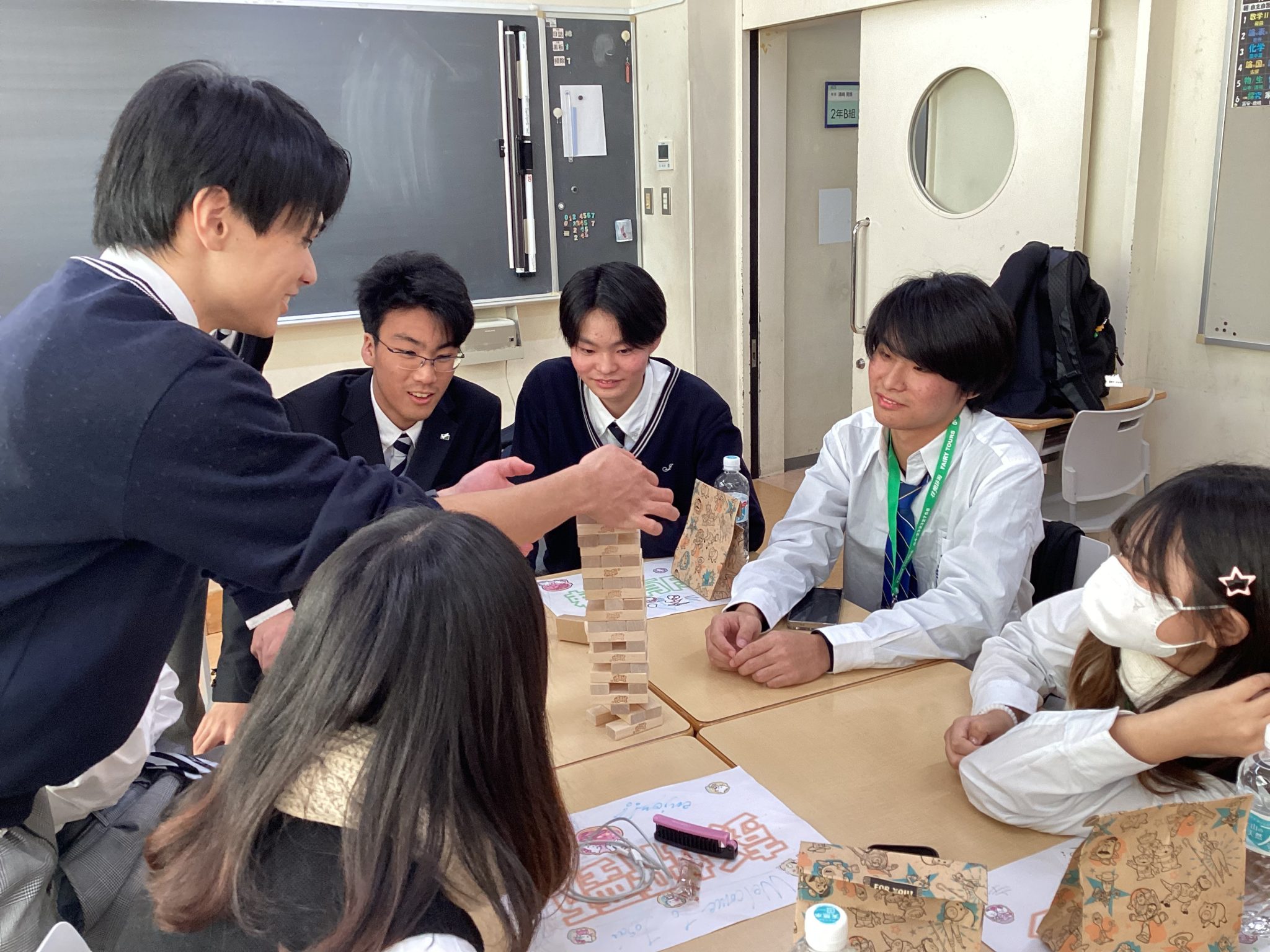 グループ別の昼食をはさんで実施したクラス別交流会では、カードゲームやジェンガ(バランスゲーム)など行い、打ち解けた雰囲気で交流を深めました。